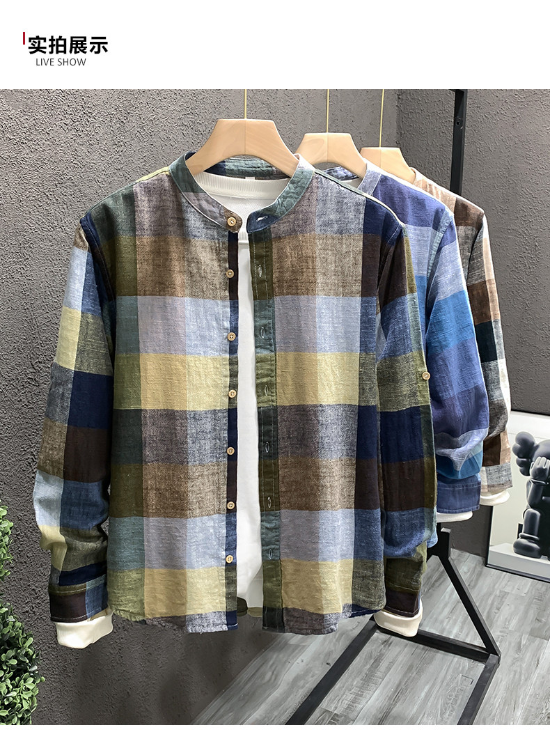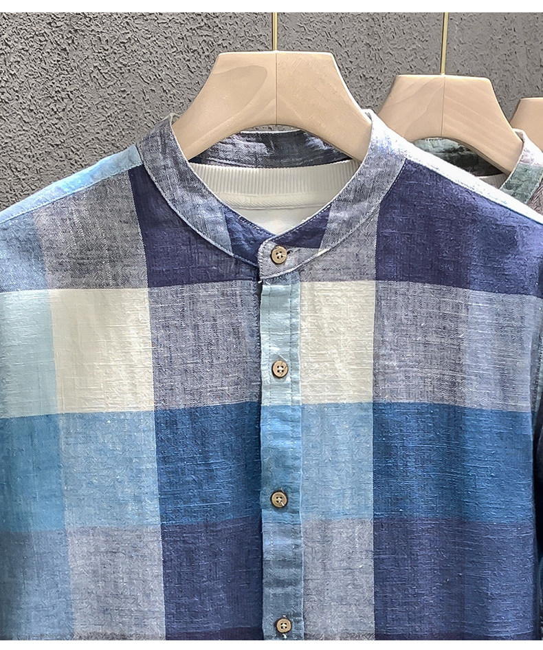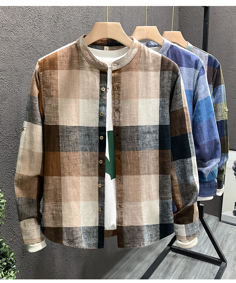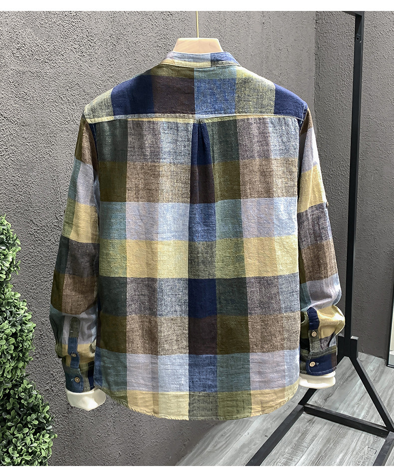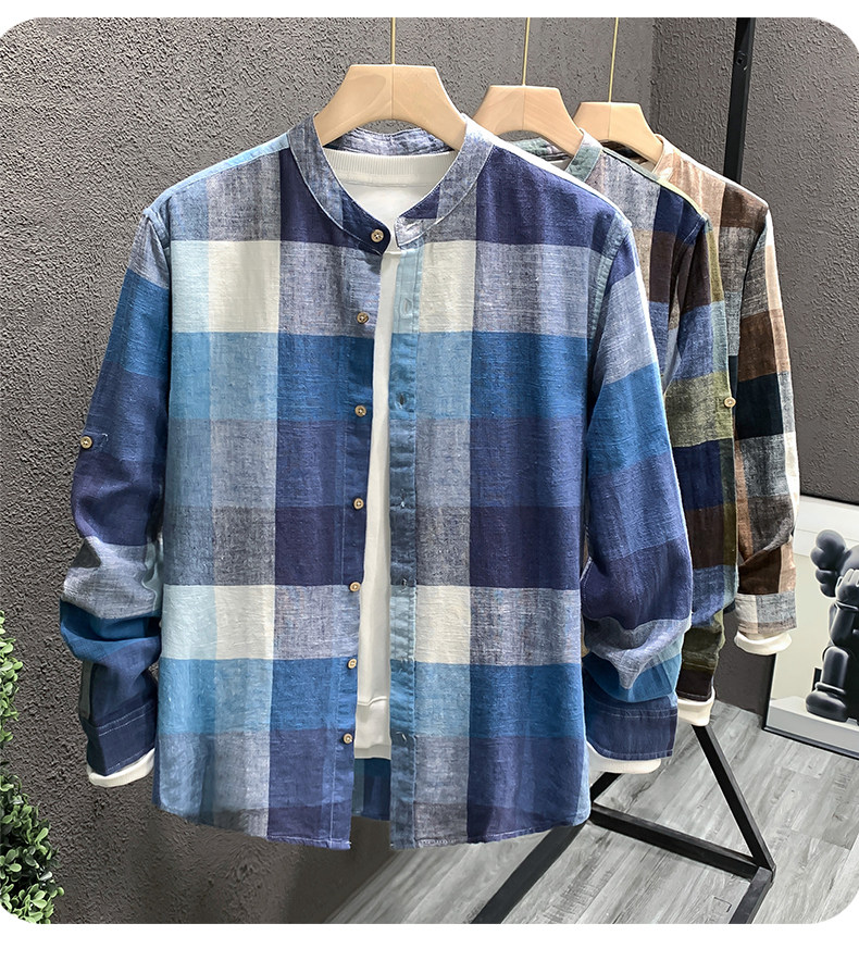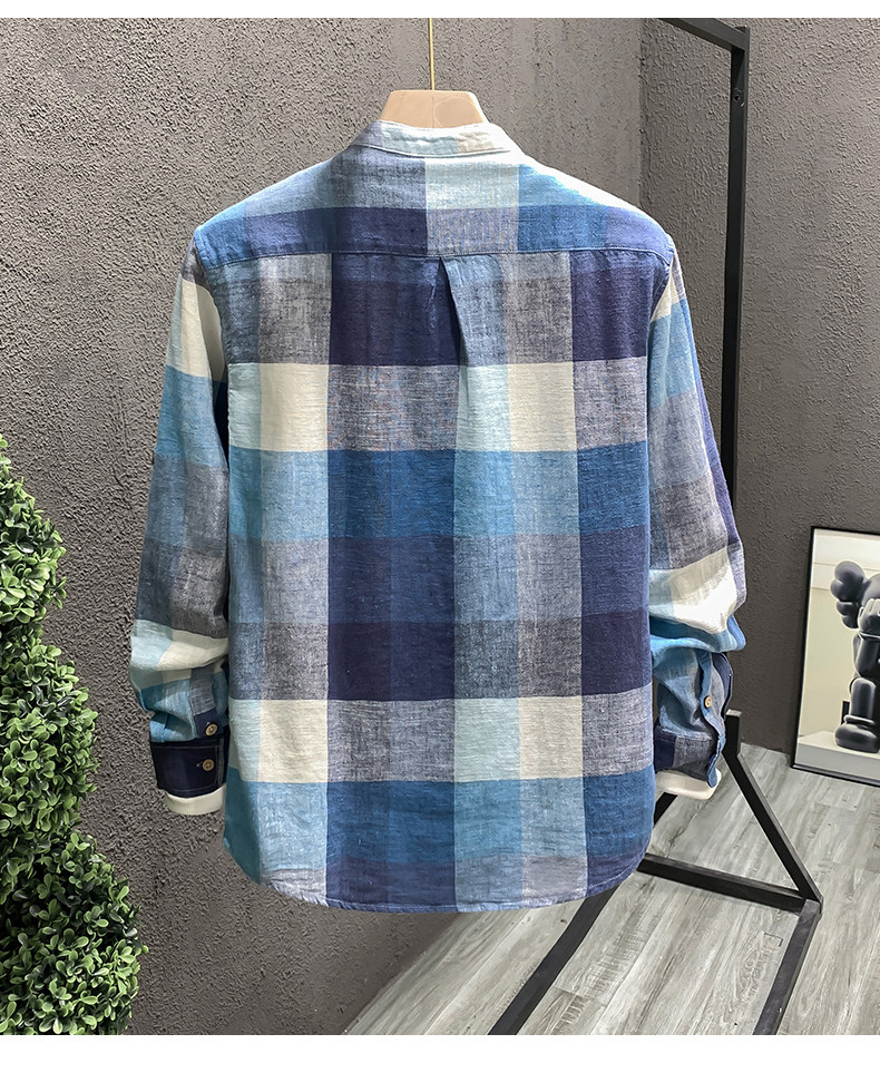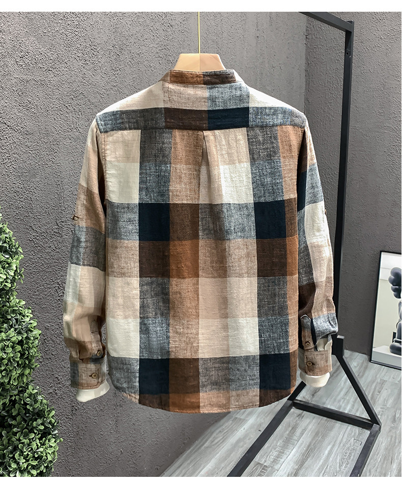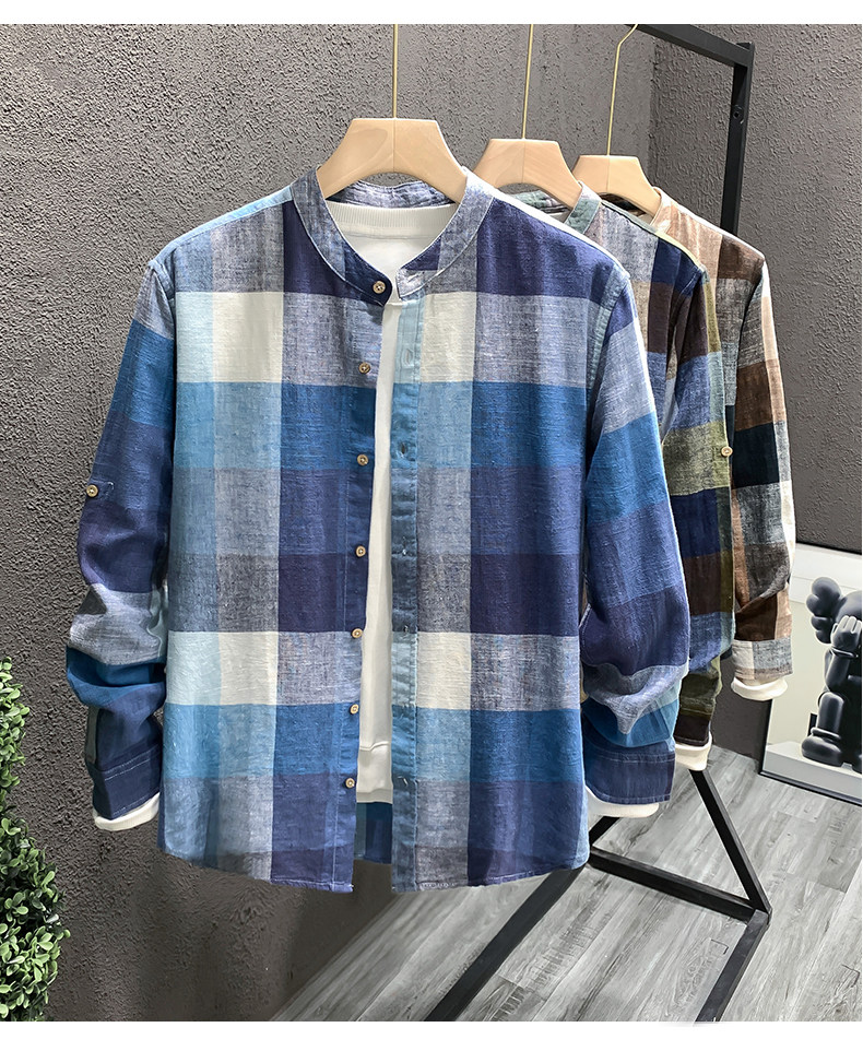 Importé - Chemise Homme Lin Carreau Manche Longue